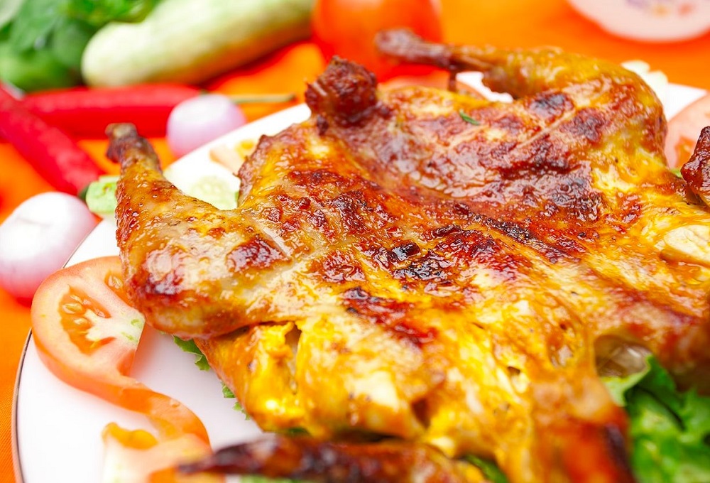 Thịt gà sau khi ướp sẽ đem nướng trên bếp than hồng với độ nóng vừa phải.